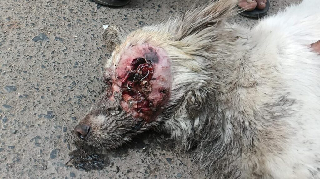 SpitzToday, we rescued an innocent soul from the streets of Memco, Naroda, in a heartbreaking condition. He was found lying on the road, helpless, with maggots eating away his eye and part of his skull, likely from an old untreated wound.